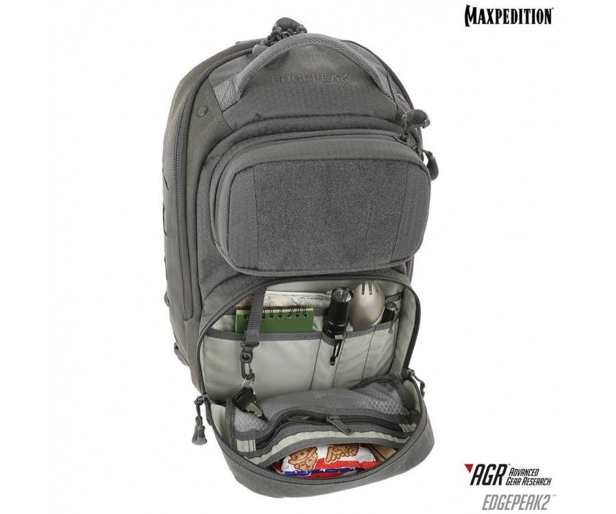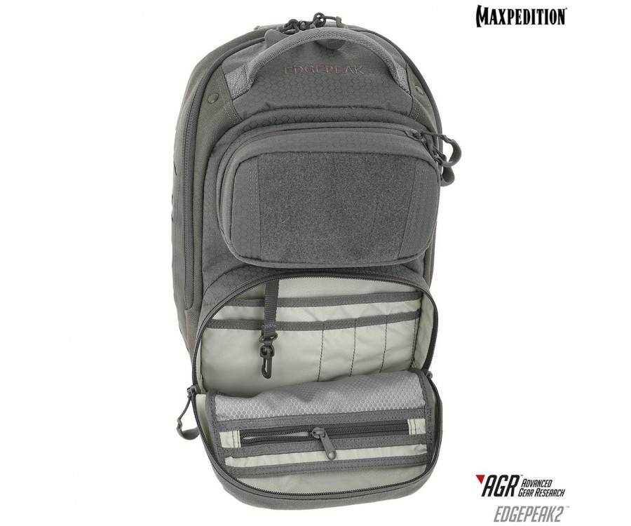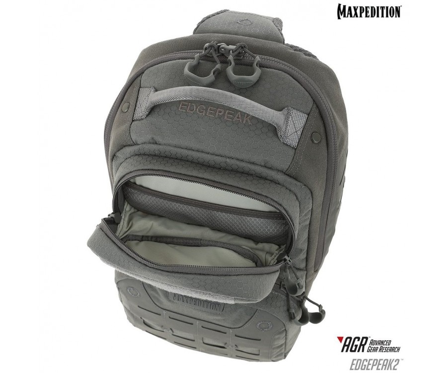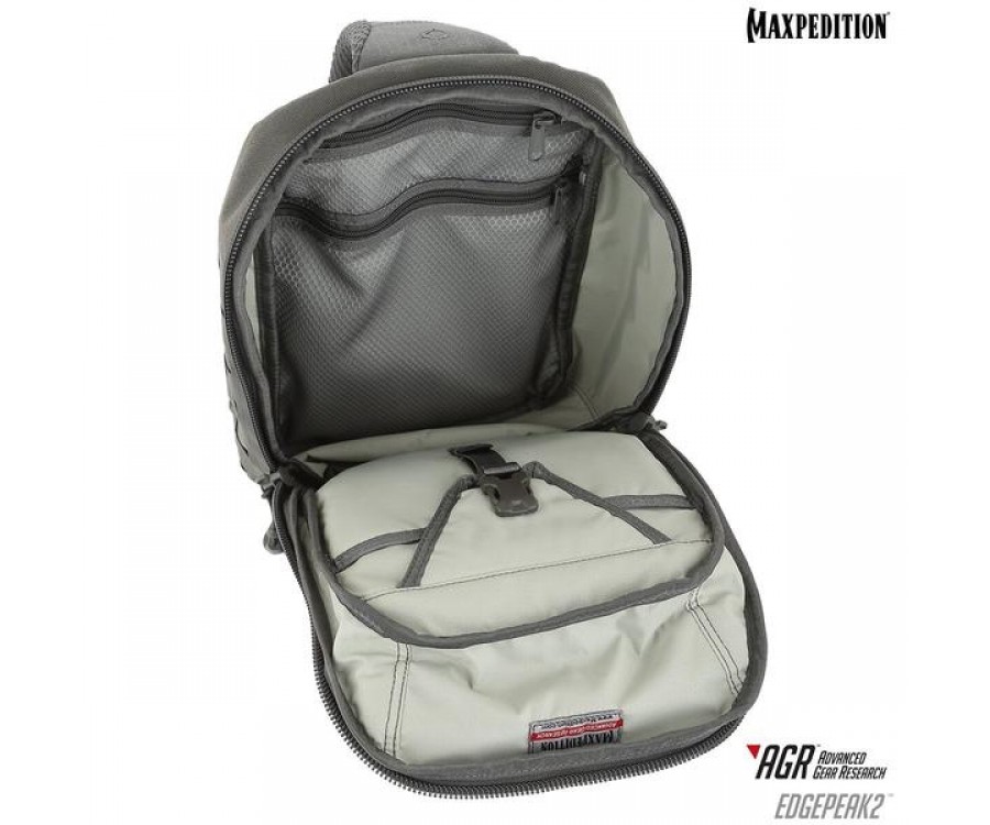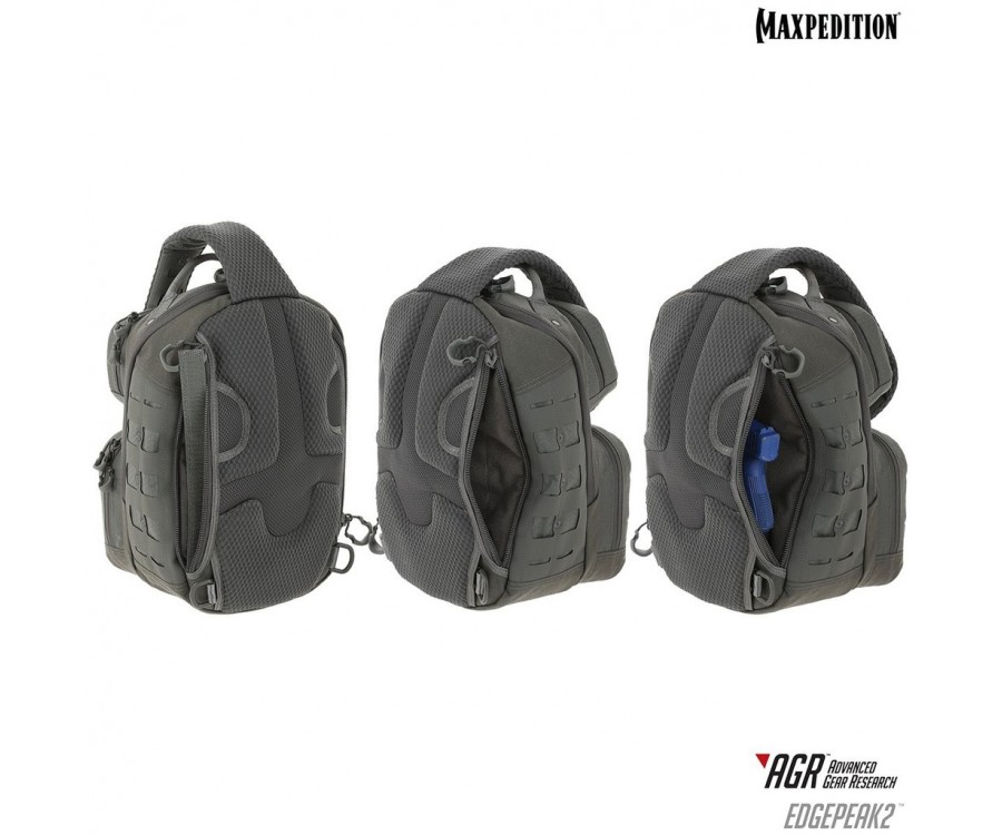 Edgepeak v2.0 - это полностью симметричный слинг, который можно носить на левом или правом плече пользователя. У него есть задний отсек CCW, к которому можно быстро получить доступ, расстегнув стабилизирующий ремень и повернув рюкзак к передней части тела. Он имеет запираемое основное отделение для безопасного хранения электроники и ценных вещей.