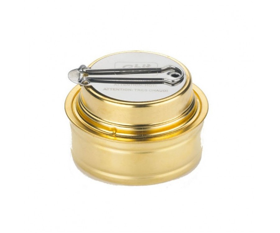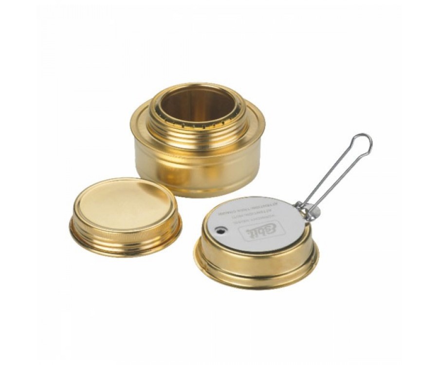 Спиртовая горелка из латуни Герметичная завинчивающаяся крышка Для денатурата объемом 70 мл Складная ручка для удобного регулирования и тушения пламени В комплекте со всеми спиртовыми горелками Esbit